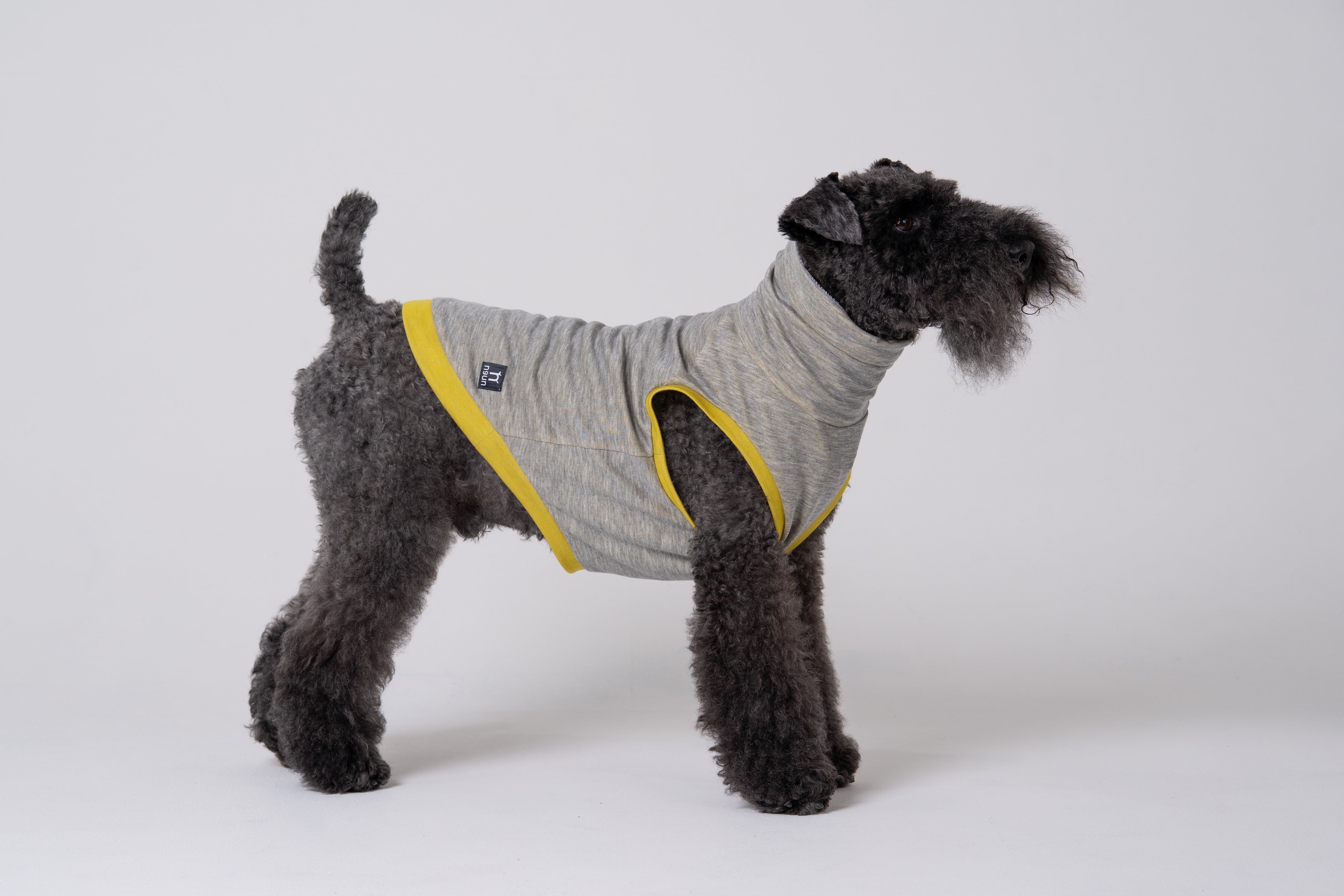 「バイカラー・ハイネック プルオーバー〈GRAY&YELLOW〉」です。