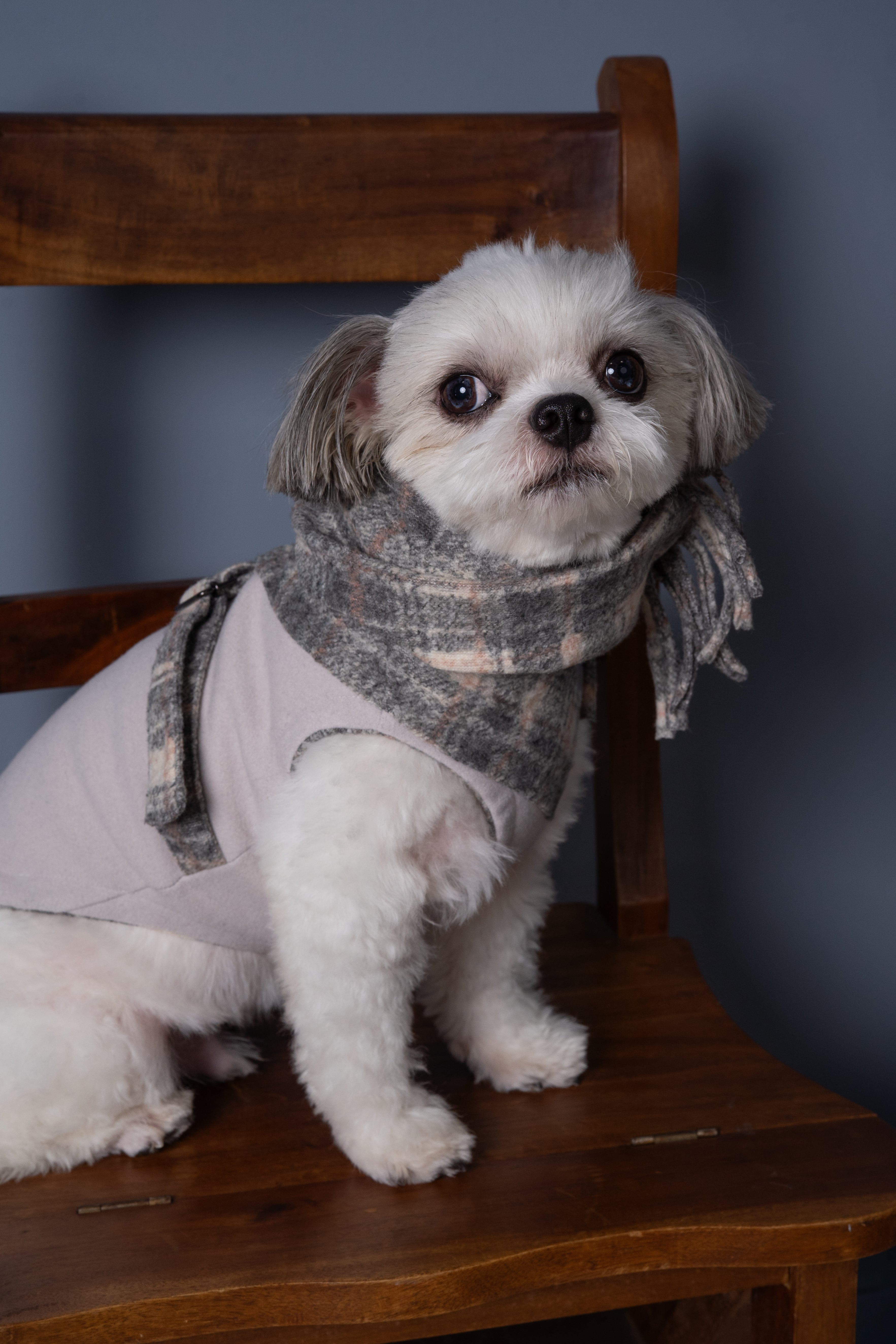 ●Sサイズ・・首回り25~28㎝ 衿高さ15㎝ フリンジ長さ8㎝(目安体重3~5㎏位)