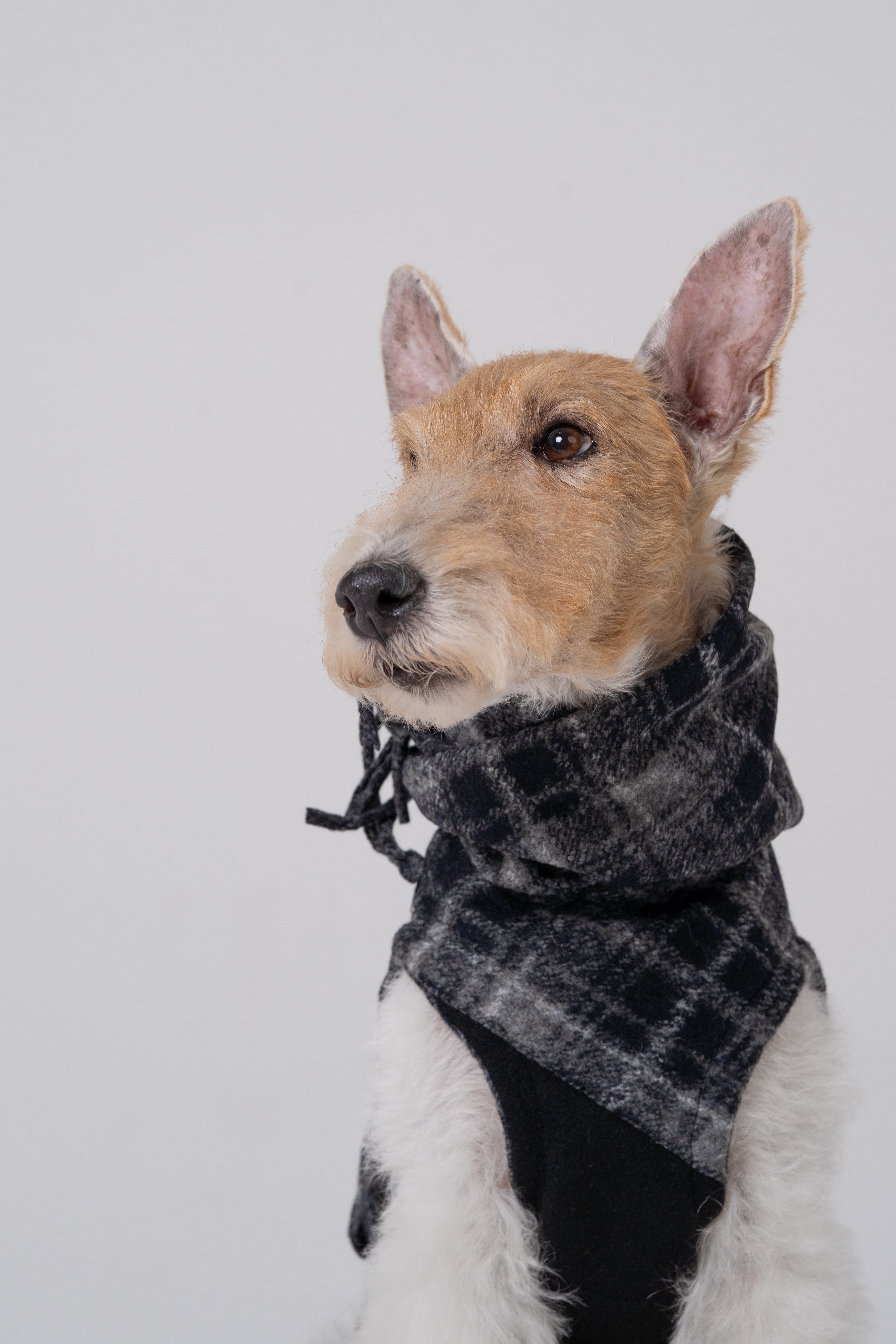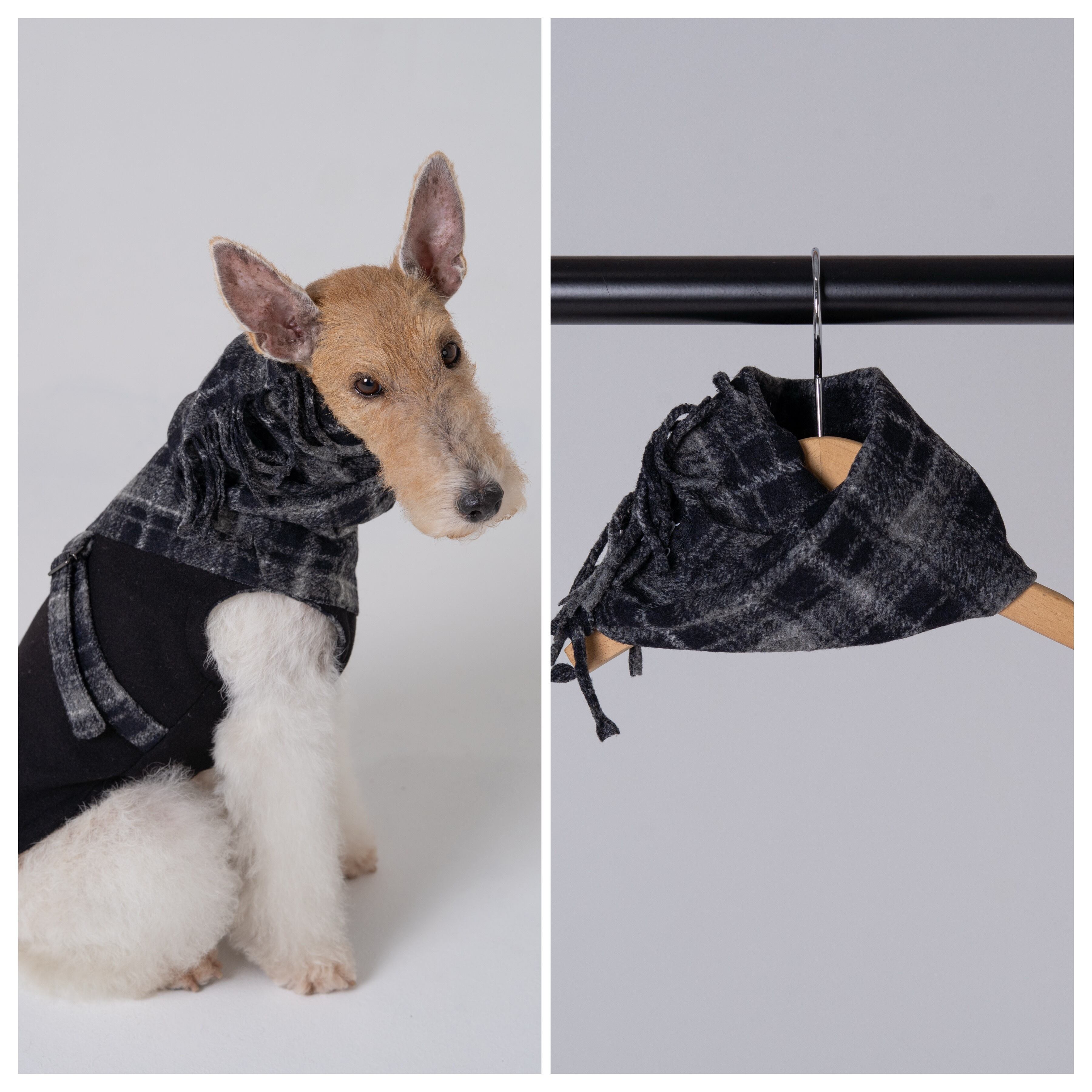 ●Mサイズ・・首回り28~32㎝ 衿高さ15㎝ フリンジ長さ8㎝(目安体重5~7㎏位)